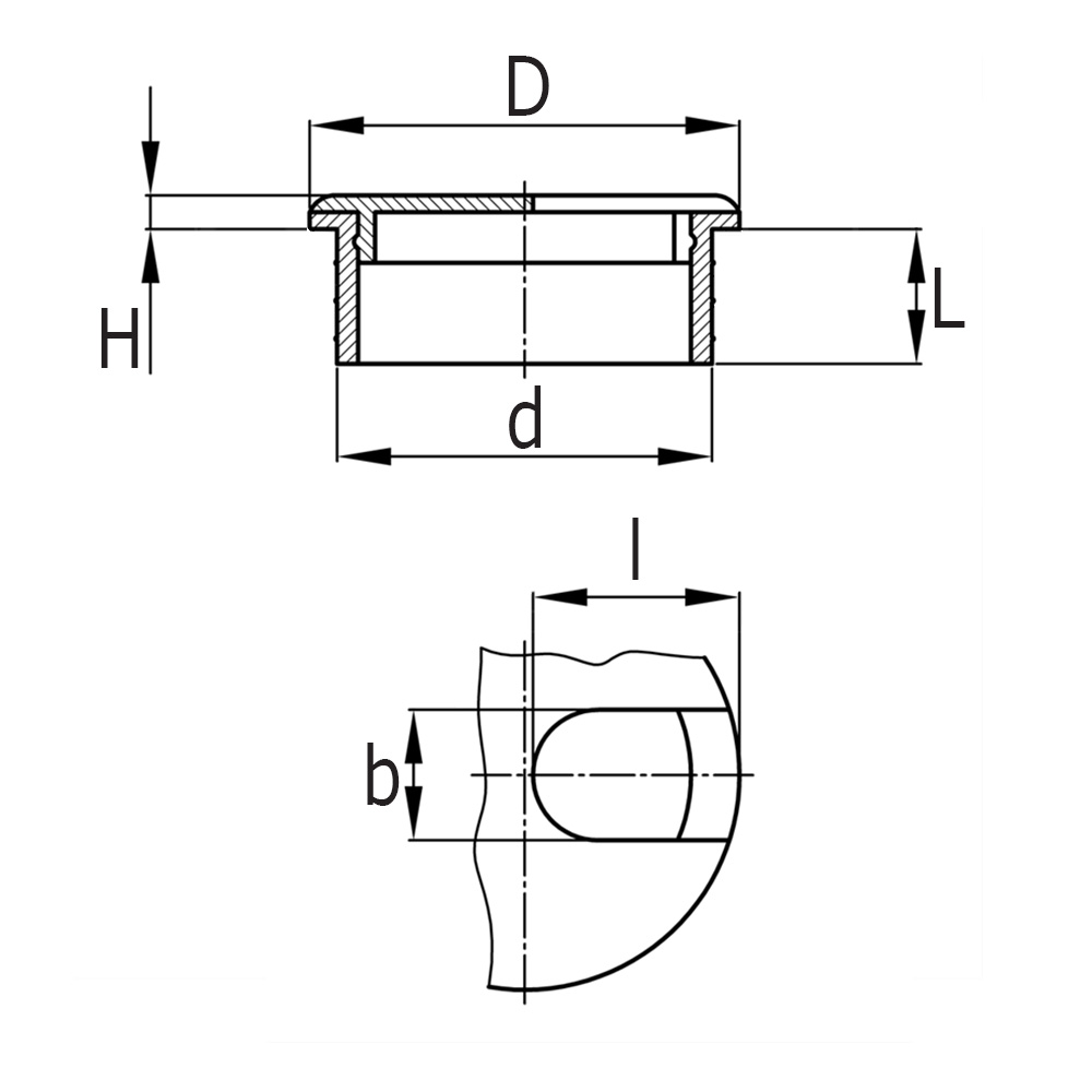 b=Breedte doorvoergat, Boring=Ø-Montagegat, D=Ø-Kop, d=Ø-Schacht, H=Kophoogte, L=Schachtlengte, l=Lengte doorvoergat, Uitv.=Uitvoering