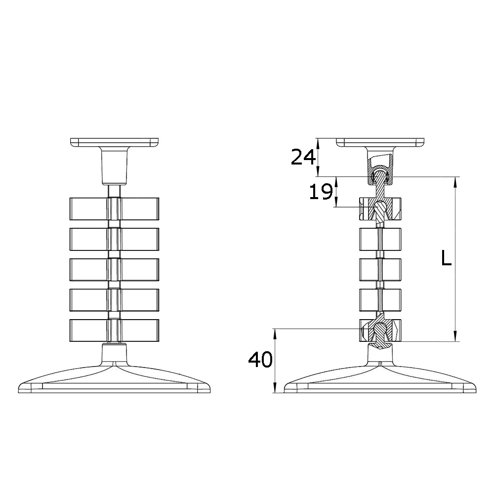 Aantal=Aantal segmenten, D=Lengte/Breedte voetplaat, L=Slanglengte, l1=Lengte per segment