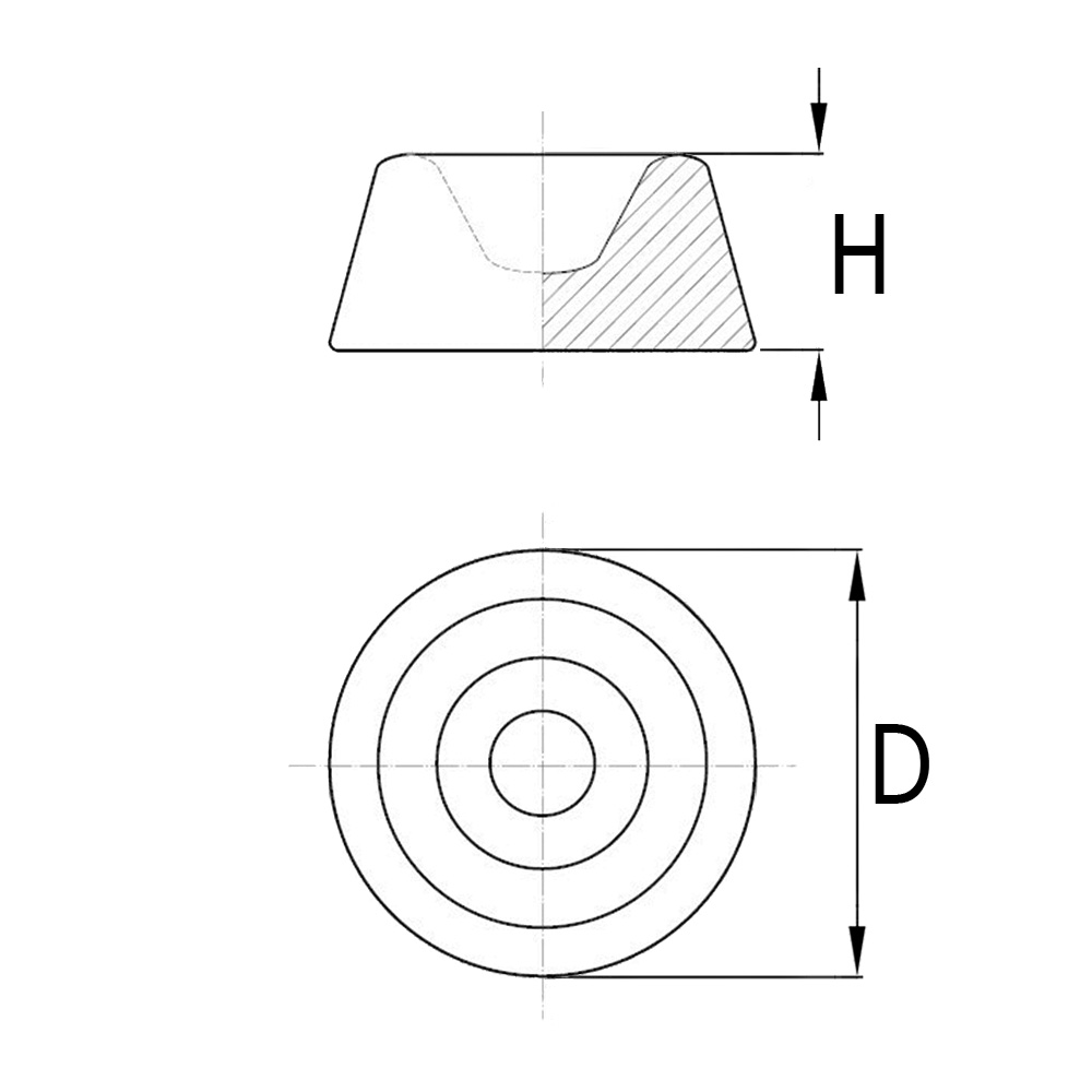 LegendaD=Diameter of lengte x breedte, H=Hoogte, K=Indicatie draagvermogen per voetje in kg bij 24°C, Uitv.=Model